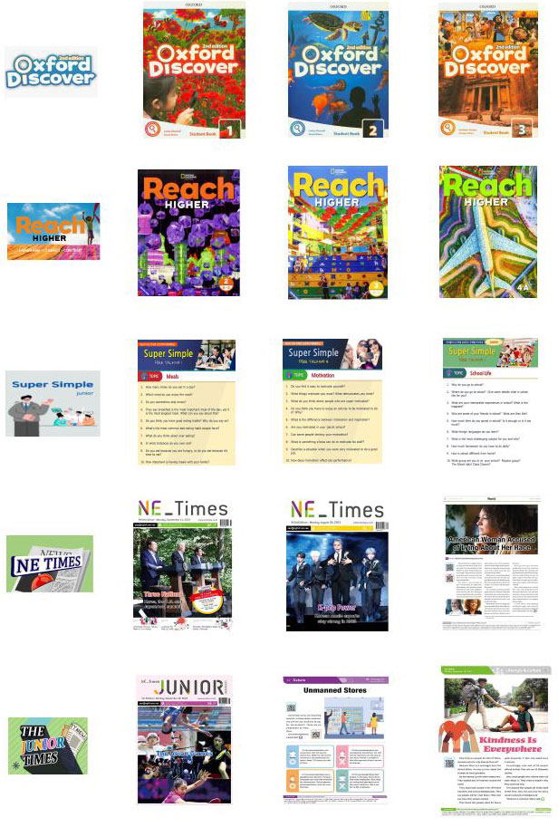 - 교재 : Oxford Discover, Reach Higher, Fun Reading(4~6), NE TIMES, THE JUNIOR TIMES