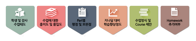 또한 선생님이 한국인이 아니다보니 학생이 수업태도, 학습방향, 영어수준에 맞는 커리큘럼 및 수업방식까지 직접 컨트롤하기는 어려운 부분이 있습니다.